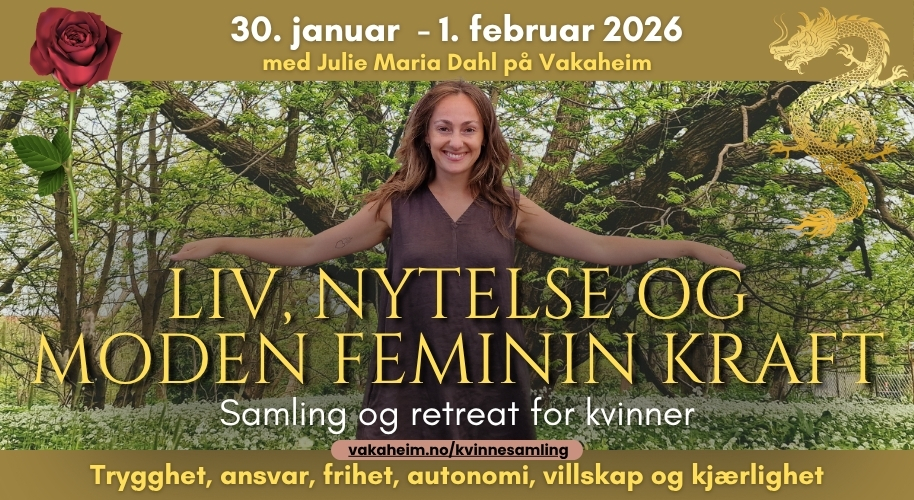 Julie inviterer deg til å leve ut den fullstendige kvinnen som venter på deg inni deg. Gjennom dyptgripende indre arbeid, uttrykk gjennom kropp og stemme, og i fellesskap med andre dedikerte kvinner, kaller jeg på hun i deg som lever uten begrensninger, skam og litenhet. Liv, nytelse og moden feminin kraft er din sanne natur. Velkommen til kvinnesamling på Vakaheim fredag 30. januar til søndag 1. februar 2026.